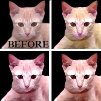Adjust curving, detail, and color settings, to convert photo to cartoon having desired effects. less detail and more curving will result in a picture, more like a painting. Please use color-editor buttons to increase color contrast, hue etc, as required.